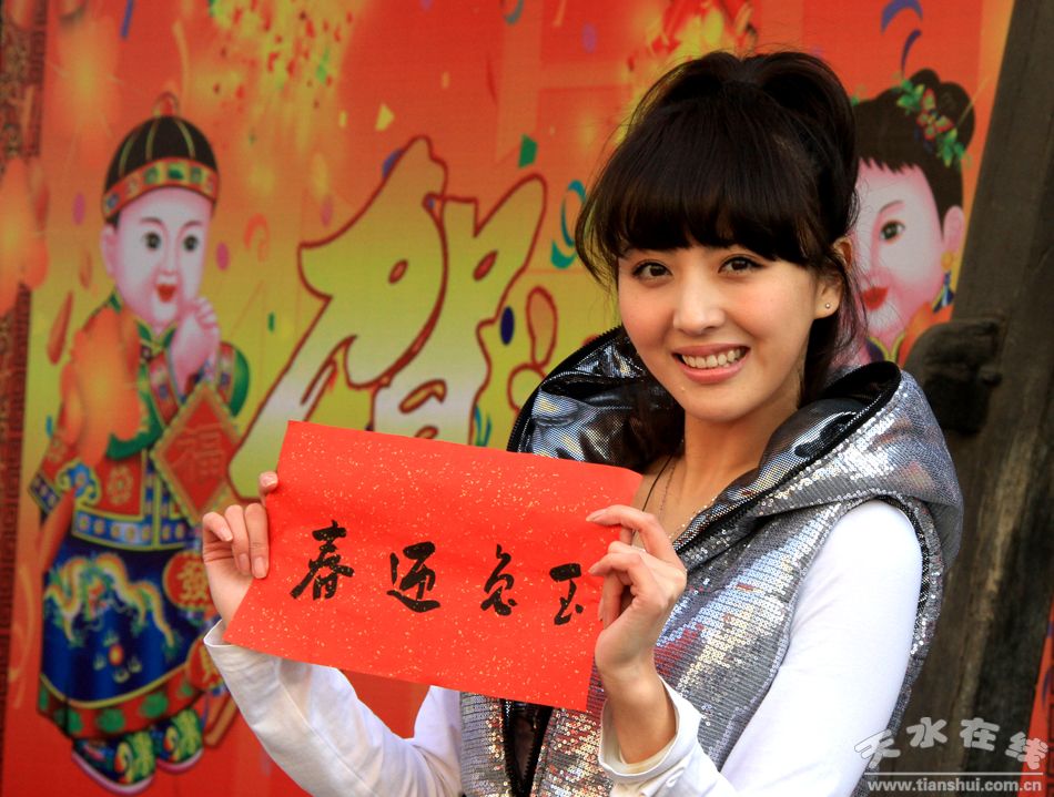 (2011年2月1日,天水籍影視明星徐小颯在天水南宅子向家鄉(xiāng)人民拜年。)
