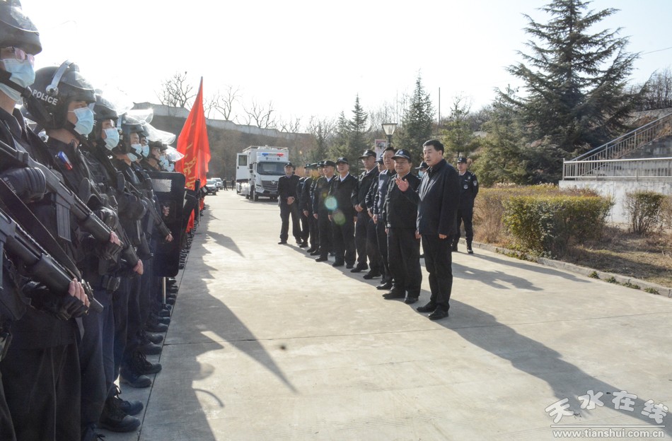 新天水訊【記者李旺旺】3月4日,天水市公安局組織全市公安機(jī)關(guān)開展2022年全警實(shí)戰(zhàn)大練兵應(yīng)急處突拉動演練。 市委常委、政法委書記劉天波宣布演練開始并點(diǎn)評,副市長、市公安局黨委書記、局長郭慶祥講話。