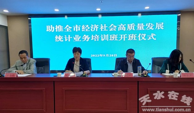 9月28日,天水市助推全市經(jīng)濟(jì)高質(zhì)量發(fā)展統(tǒng)計(jì)業(yè)務(wù)培訓(xùn)班開(kāi)班。市統(tǒng)計(jì)局黨組書記、局長(zhǎng)鞏彩環(huán)到會(huì)并講話,副局長(zhǎng)陳建洲主持會(huì)議。市發(fā)改、工信、商務(wù)等部門,經(jīng)開(kāi)區(qū)管委會(huì),各縣區(qū)相關(guān)單位分管領(lǐng)導(dǎo)和業(yè)務(wù)人員、市縣統(tǒng)計(jì)局干部共80余人參加培訓(xùn)。