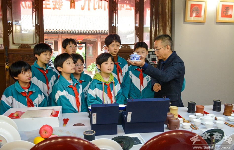在天水66號(hào)文創(chuàng)園,天水市逸夫?qū)嶒?yàn)中學(xué)“陶藝泥塑社”的學(xué)生們,依次參觀了文創(chuàng)園里的泥塑、陶瓷、剪紙、面塑和古民居等,不僅領(lǐng)略到非物質(zhì)文化遺產(chǎn)帶來(lái)的魅力,還詳細(xì)了解到一些生活中的普通材料,是如何經(jīng)過(guò)能工巧匠之手,變成了一件件精美的藝術(shù)品。