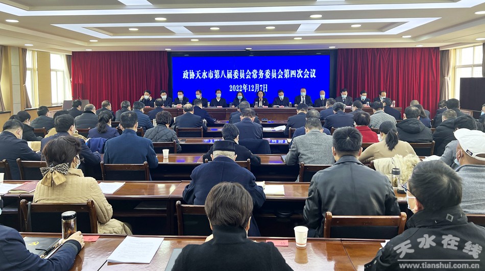 12月7日,市政協(xié)黨組書記、主席王燕主持召開政協(xié)天水市第八屆委員會常務(wù)委員會第四次會議。市委常委、副市長張宇晶應(yīng)邀出席會議;市政協(xié)黨組副書記、副主席郭明興,副主席馬勤學(xué)、馬筱寧、吳立新、董仲奇、崔玉軍、何寶平、羅增芳、范多智,黨組成員、秘書長董小明,黨組成員、經(jīng)濟(jì)委主任賈忠慧出席;各縣區(qū)政協(xié)主席,市級各民主黨派、市工商聯(lián)和市直相關(guān)部門負(fù)責(zé)人列席會議。