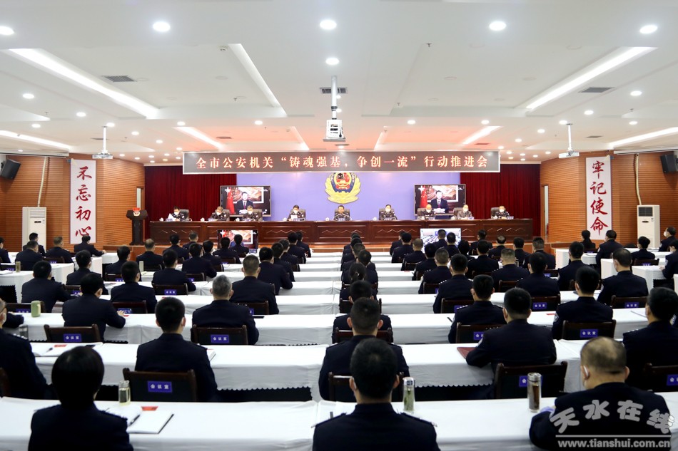 1月9日下午,天水市公安局召開(kāi)全市公安機(jī)關(guān)“鑄魂強(qiáng)基,爭(zhēng)創(chuàng)一流”行動(dòng)推進(jìn)會(huì),深入學(xué)習(xí)貫徹黨的二十大精神,傳達(dá)貫徹省市領(lǐng)導(dǎo)對(duì)天水公安工作批示精神,全面總結(jié)“鑄魂強(qiáng)基,爭(zhēng)創(chuàng)一流”行動(dòng)工作成效,動(dòng)員全市公安機(jī)關(guān)進(jìn)一步樹(shù)牢“開(kāi)局就是決戰(zhàn)、起步就要沖刺、轉(zhuǎn)身就抓落實(shí)”工作理念,確保各項(xiàng)工作開(kāi)好局、起好步,著力推動(dòng)天水公安工作奮勇?tīng)?zhēng)先、爭(zhēng)創(chuàng)一流、走在前列。副市長(zhǎng)、市公安局黨委書記、局長(zhǎng)郭慶祥主持會(huì)議并講話。