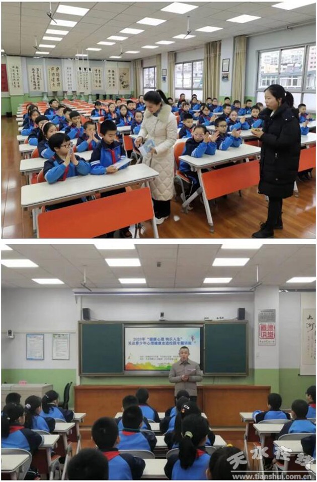 天水市第三人民醫(yī)院醫(yī)學(xué)心理科心理治療師王智瑄為天水市實(shí)驗(yàn)小學(xué)的同學(xué)們作了題為《快樂(lè)童年 健康成長(zhǎng)》專題講座。講座貼近學(xué)生實(shí)際,以真實(shí)案例導(dǎo)入,講解深入淺出,幫助學(xué)生正確認(rèn)識(shí)自我、肯定自我,學(xué)會(huì)關(guān)愛(ài)他人、關(guān)愛(ài)社會(huì),增強(qiáng)學(xué)生適應(yīng)社會(huì)、迎接挑戰(zhàn)的素質(zhì)與能力。通過(guò)圖片、心理量表測(cè)試、案例故事、游戲互動(dòng)等多種形式,讓青少年增強(qiáng)覺(jué)察情緒、認(rèn)識(shí)情緒、識(shí)別情緒、管理情緒的能力,幫助青少年樹(shù)立陽(yáng)光心態(tài),擁抱美好生活。