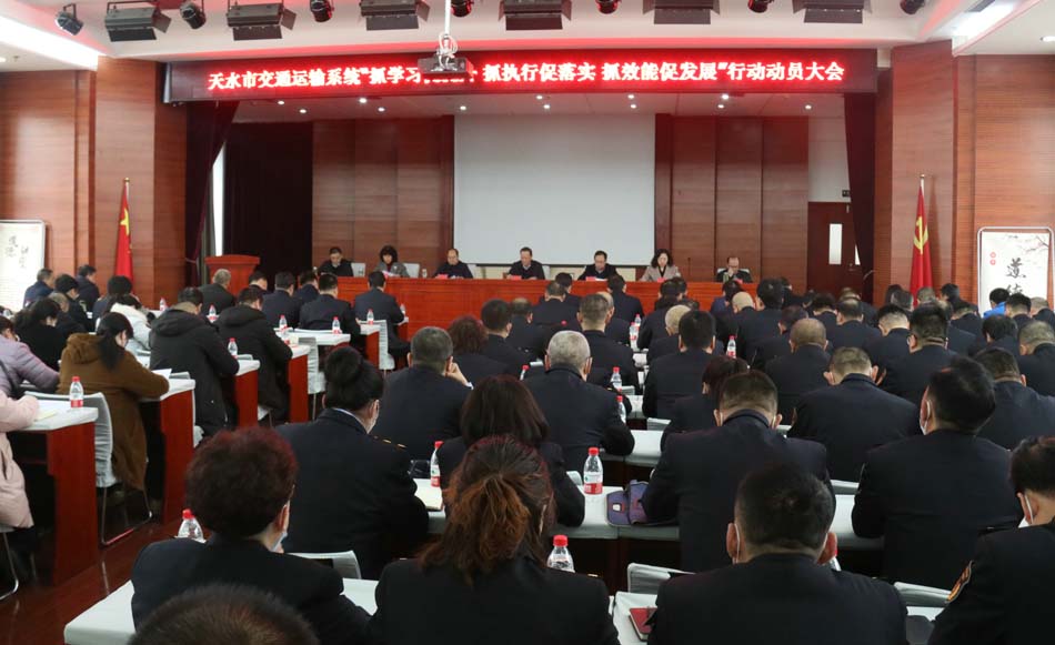按照省市“三抓三促”行動統(tǒng)一安排部署,市交通運輸局迅速進入狀態(tài),立即組建工作專班,深入領會省市部署要求,全面梳理交通運輸工作重點,對標對表制定實施方案、學習工作計劃和督查制度臺賬。經(jīng)過周密部署,于2月27日組織召開了全市交通運輸系統(tǒng)“抓學習促提升抓執(zhí)行促落實抓效能促發(fā)展”行動動員大會,傳達學習省、市和省交通運輸廳“三抓三促”行動動員和部署會議精神,宣讀了《天水市交通運輸局“抓學習促提升抓執(zhí)行促落實抓效能促發(fā)展”行動實施方案》,全面部署交通運輸系統(tǒng)“三抓三促”行動。