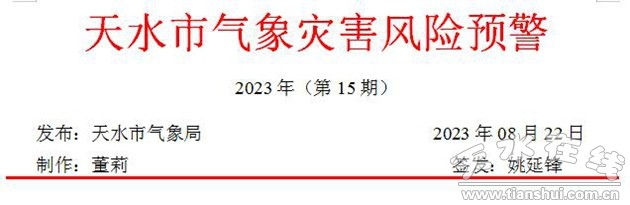 天水市氣象局8月22日15時50分發(fā)布強對流黃色風險預警
