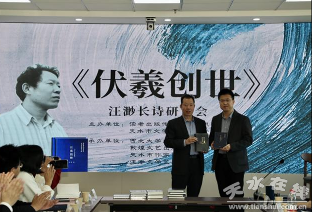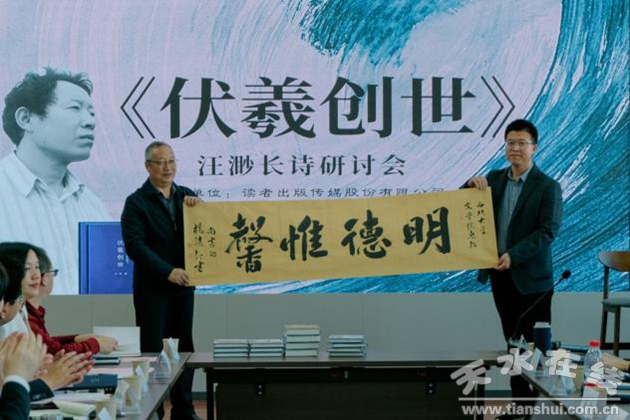 10月14日下午,由讀者出版?zhèn)髅焦煞萦邢薰、天水市文學(xué)藝術(shù)界聯(lián)合會(huì)主辦,西北大學(xué)文學(xué)院、敦煌文藝出版社、天水市作家協(xié)會(huì)、汪渺文學(xué)藝術(shù)工作室承辦的“作家搖籃·對(duì)話”——汪渺長(zhǎng)詩(shī)《伏羲創(chuàng)世》研討會(huì)在長(zhǎng)安校區(qū)文學(xué)院第一會(huì)議室(東學(xué)樓北701)順利舉行。