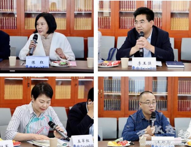 ▲詩(shī)人陳紅、天水市作協(xié)副主席李王強(qiáng)、天水市作協(xié)理事王軍紅、天水市攝影家協(xié)會(huì)秘書(shū)長(zhǎng)王新亮發(fā)言