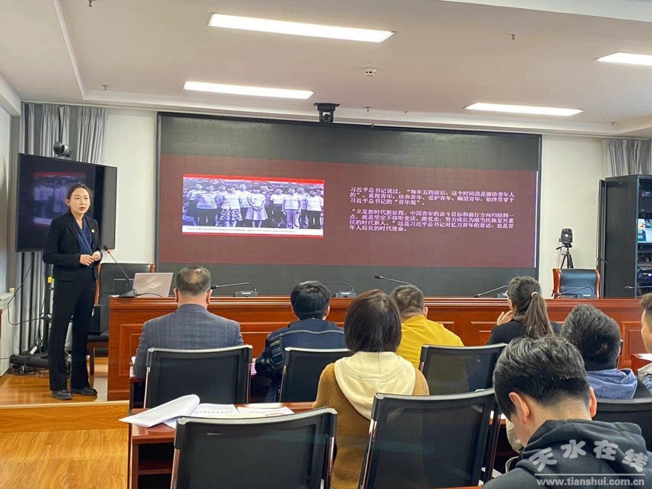 10月16日,天水市文化和旅游局結(jié)合學(xué)習(xí)貫徹習(xí)近平新時(shí)代中國(guó)特色社會(huì)主義思想主題教育學(xué)習(xí)深入開展,舉辦市直文旅系統(tǒng)青年理論主題學(xué)習(xí)宣講會(huì),全系統(tǒng)70余名團(tuán)員和青年參加會(huì)議。