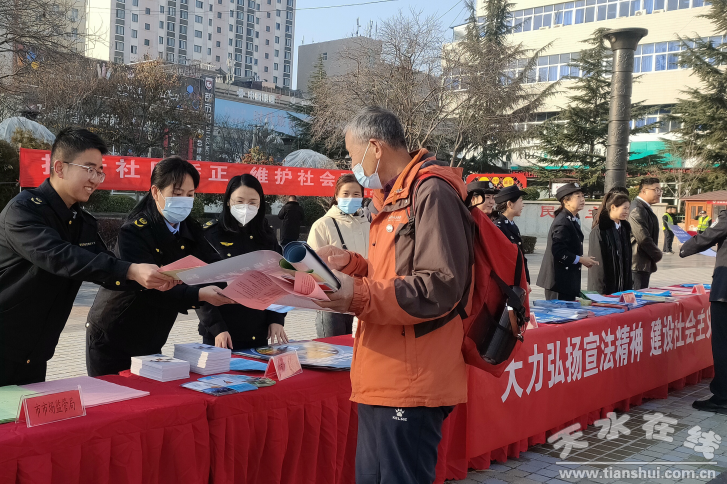 為進(jìn)一步弘揚(yáng)憲法精神,維護(hù)憲法權(quán)威,在第十個國家憲法日和第六個憲法宣傳周來臨之際,天水市市場監(jiān)管系統(tǒng)以“大力弘揚(yáng)憲法精神,建設(shè)社會主義法治文化”為主題,積極開展了“12·4”國家憲法日暨憲法宣傳周系列活動。