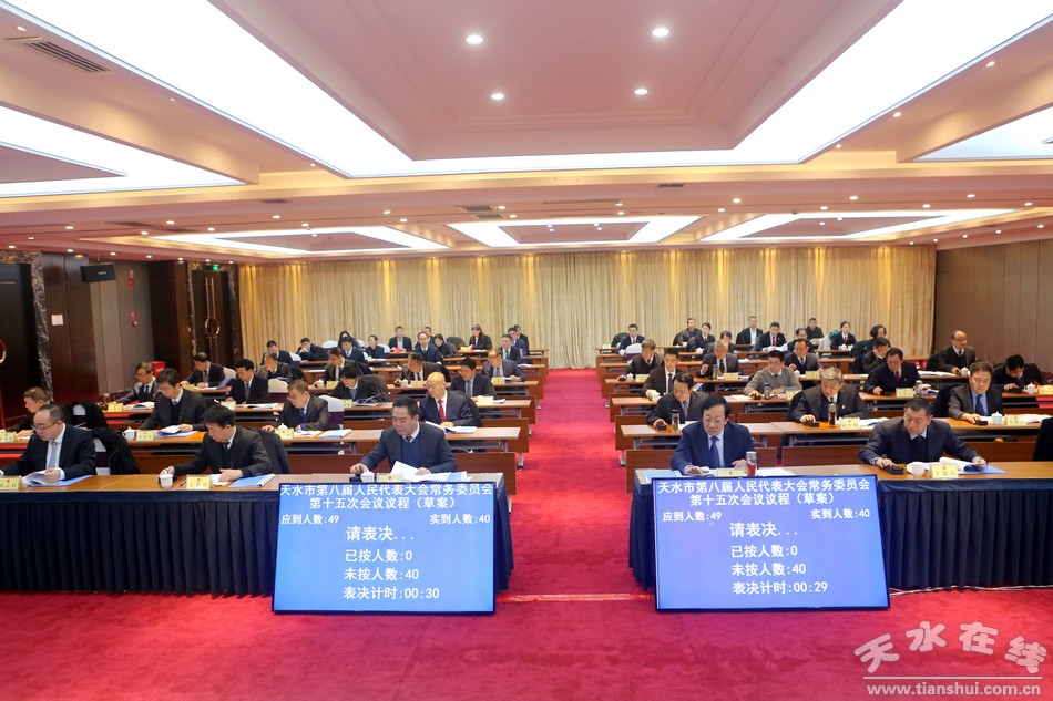 新天水訊【記者王曉馨】1月12日,天水市第八屆人民代表大會(huì)常務(wù)委員會(huì)第十五次會(huì)議召開。市人大常委會(huì)主任賈義翔、副主任申君明分別主持第一次、第二次全體會(huì)議。市人大常委會(huì)副主任何曉斌、黎映廣、沈建玲,秘書長(zhǎng)李繼明出席會(huì)議。