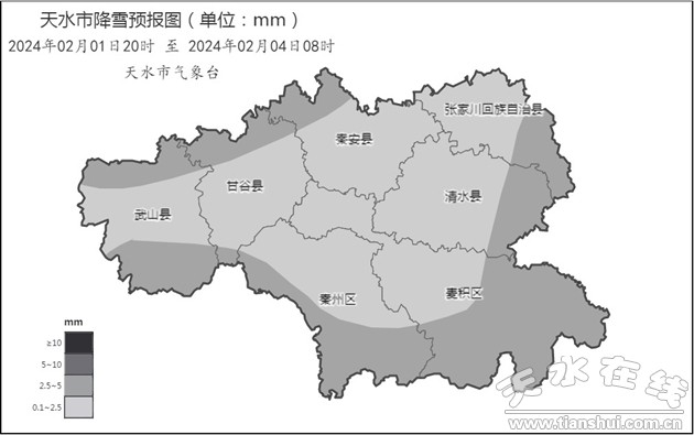 2月2日:陰轉小雪,夜間武山南部、秦州南部、麥積東南部、清水東部中雪。
