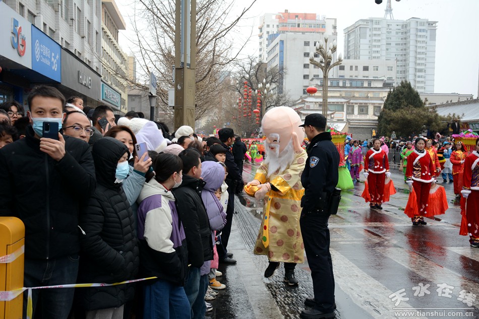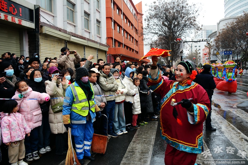 鑼鼓喧天鬧新春,傳統(tǒng)民俗年味濃。2月21日,農(nóng)歷正月十二,在漫天飛舞的雪花中,秦州區(qū)2024年春節(jié)社火匯演在主城區(qū)街道拉開了帷幕。來自各鄉(xiāng)鎮(zhèn)、社區(qū)的表演隊身著盛裝,載歌載舞,歡度新春,舞龍舞獅、扭秧歌、跑旱船、耍腰鼓……精彩紛呈的演出為市民奉獻了一場年味十足的民俗文化盛宴。