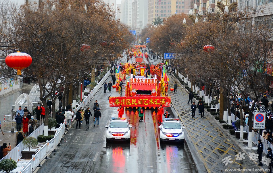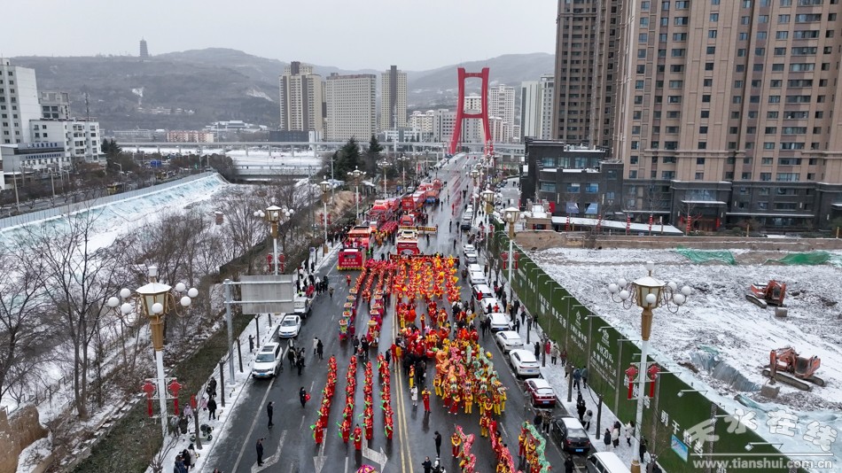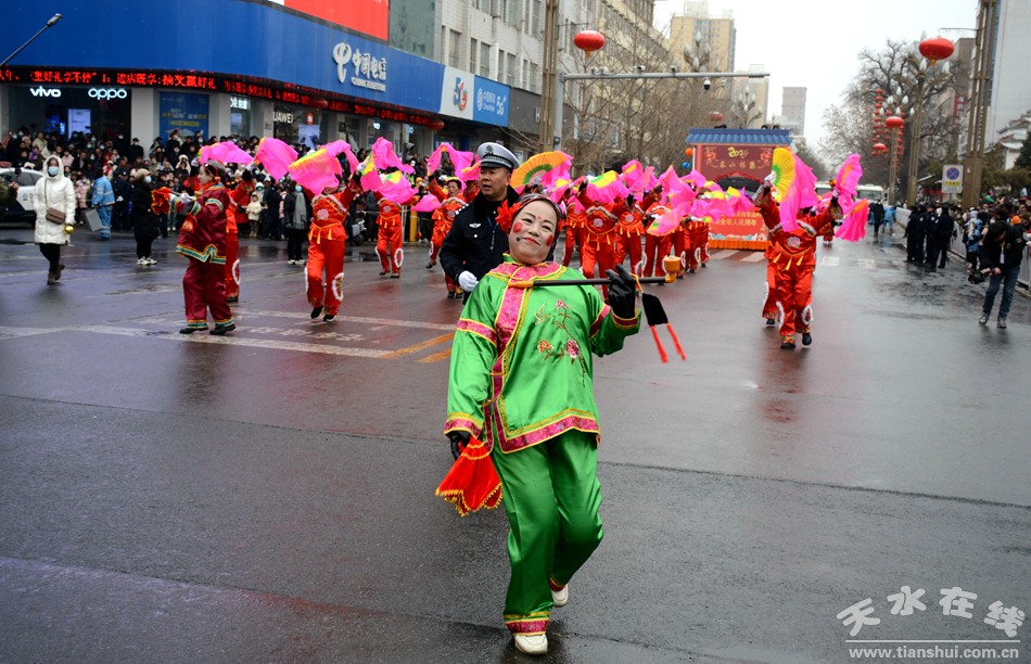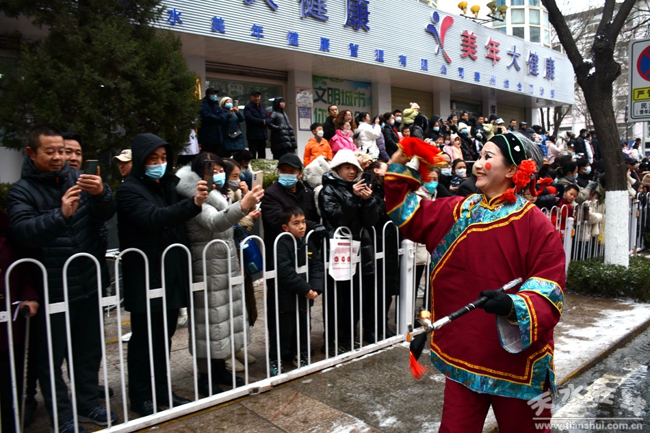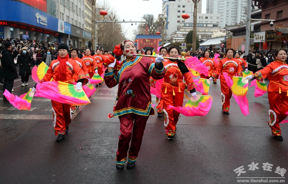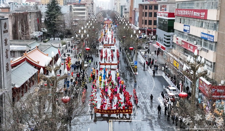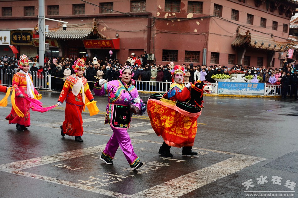 鑼鼓喧天鬧新春,傳統(tǒng)民俗年味濃。2月21日,農(nóng)歷正月十二,在漫天飛舞的雪花中,秦州區(qū)2024年春節(jié)社火匯演在主城區(qū)街道拉開了帷幕。來自各鄉(xiāng)鎮(zhèn)、社區(qū)的表演隊身著盛裝,載歌載舞,歡度新春,舞龍舞獅、扭秧歌、跑旱船、耍腰鼓……精彩紛呈的演出為市民奉獻了一場年味十足的民俗文化盛宴。