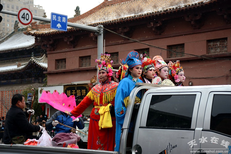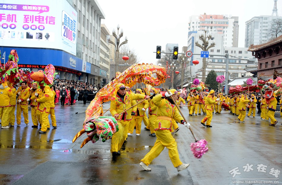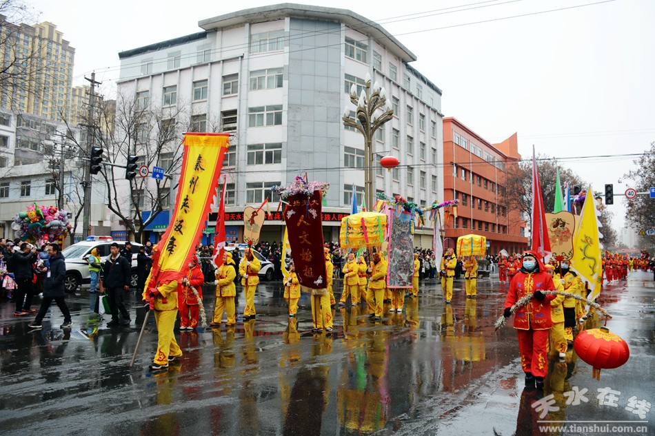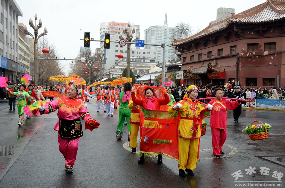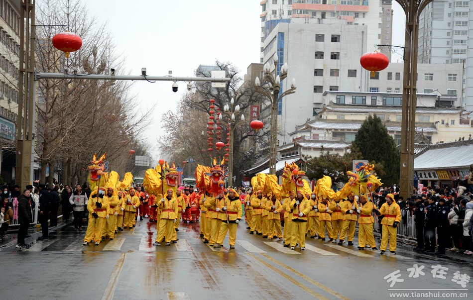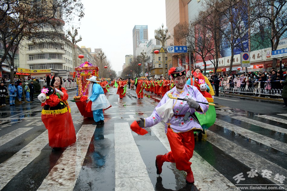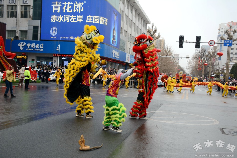 鑼鼓喧天鬧新春,傳統(tǒng)民俗年味濃。2月21日,農(nóng)歷正月十二,在漫天飛舞的雪花中,秦州區(qū)2024年春節(jié)社火匯演在主城區(qū)街道拉開了帷幕。來自各鄉(xiāng)鎮(zhèn)、社區(qū)的表演隊身著盛裝,載歌載舞,歡度新春,舞龍舞獅、扭秧歌、跑旱船、耍腰鼓……精彩紛呈的演出為市民奉獻了一場年味十足的民俗文化盛宴。