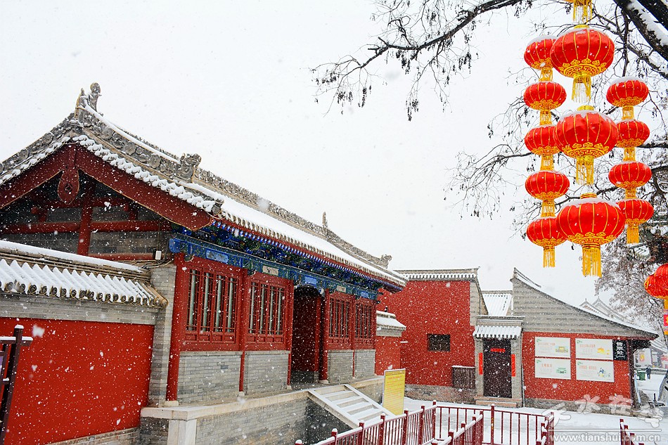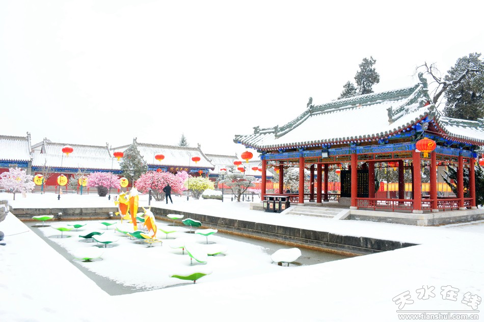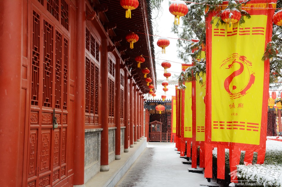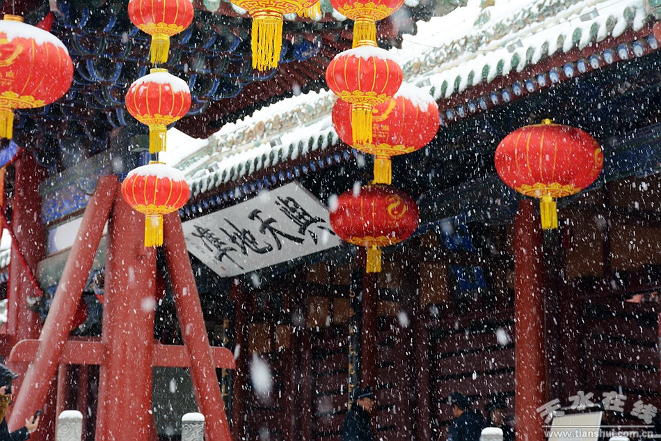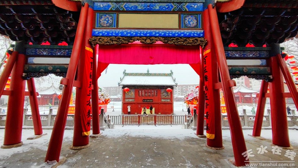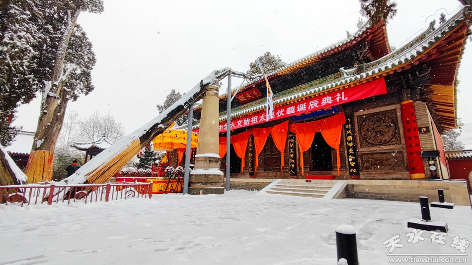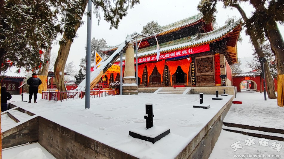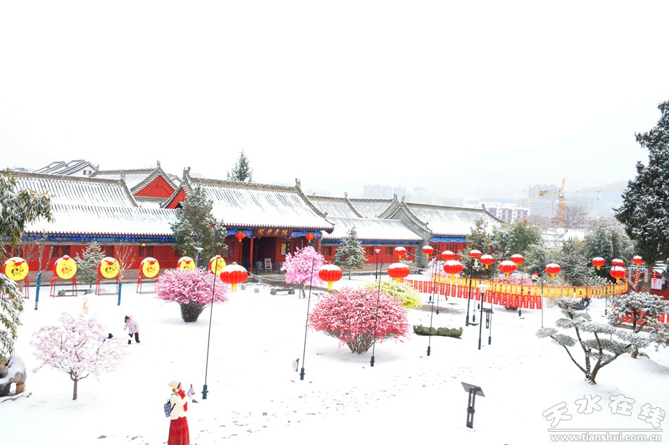 天水在線攝影報道|雪落天水伏羲廟(橫)