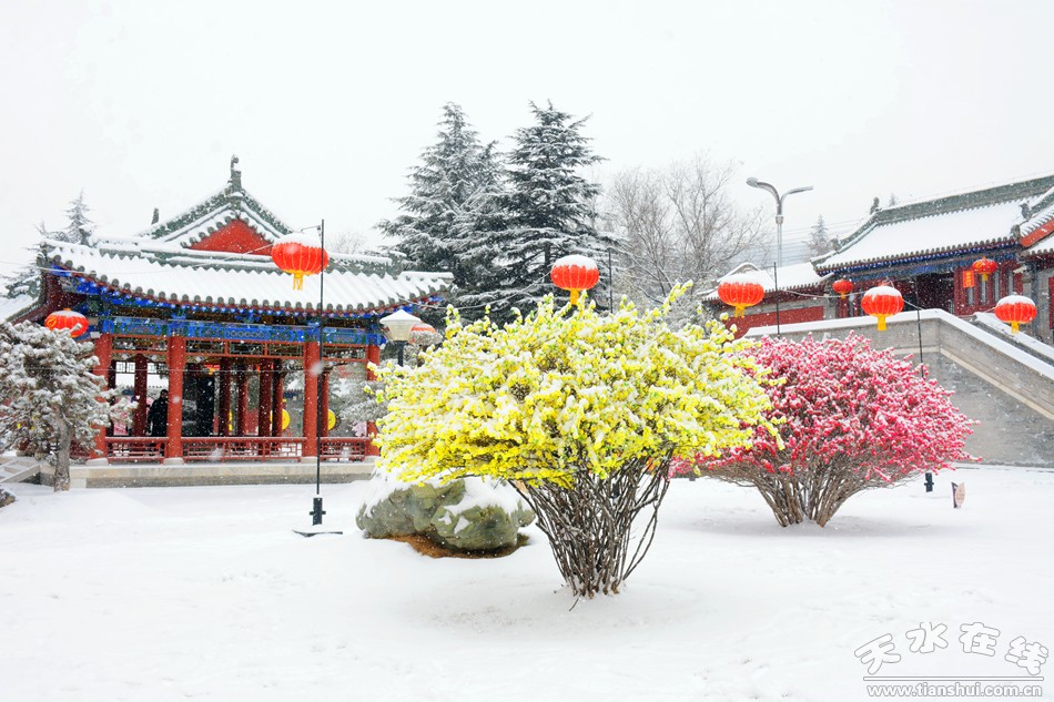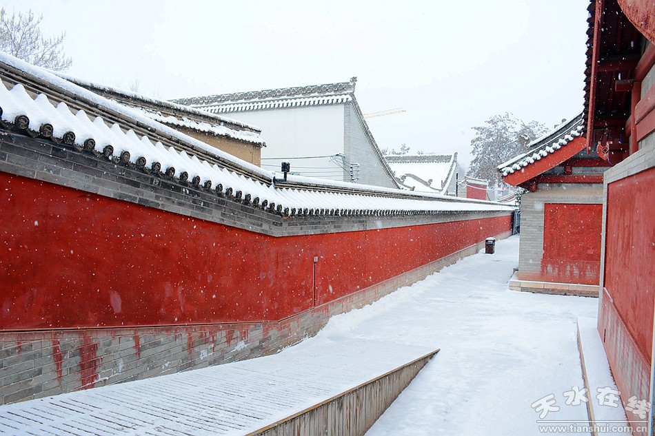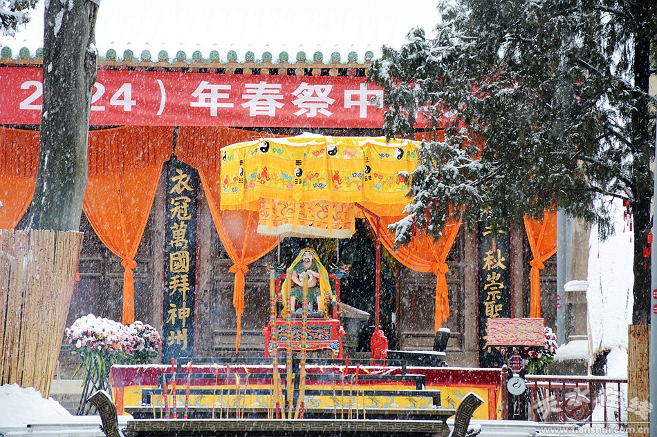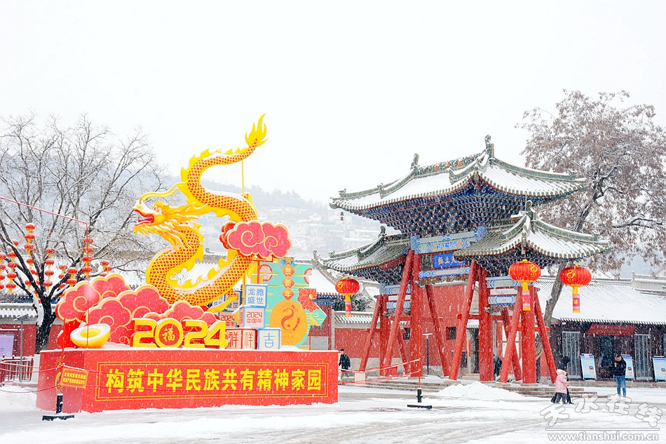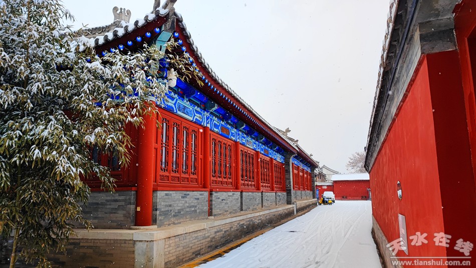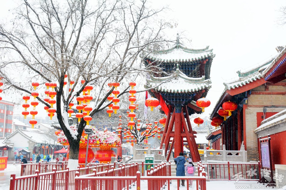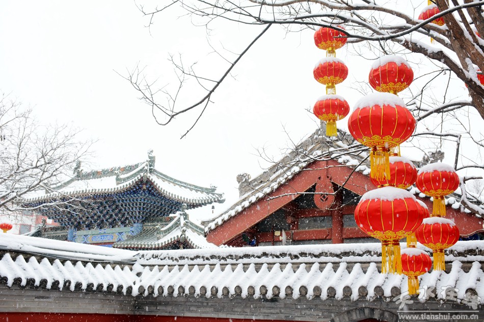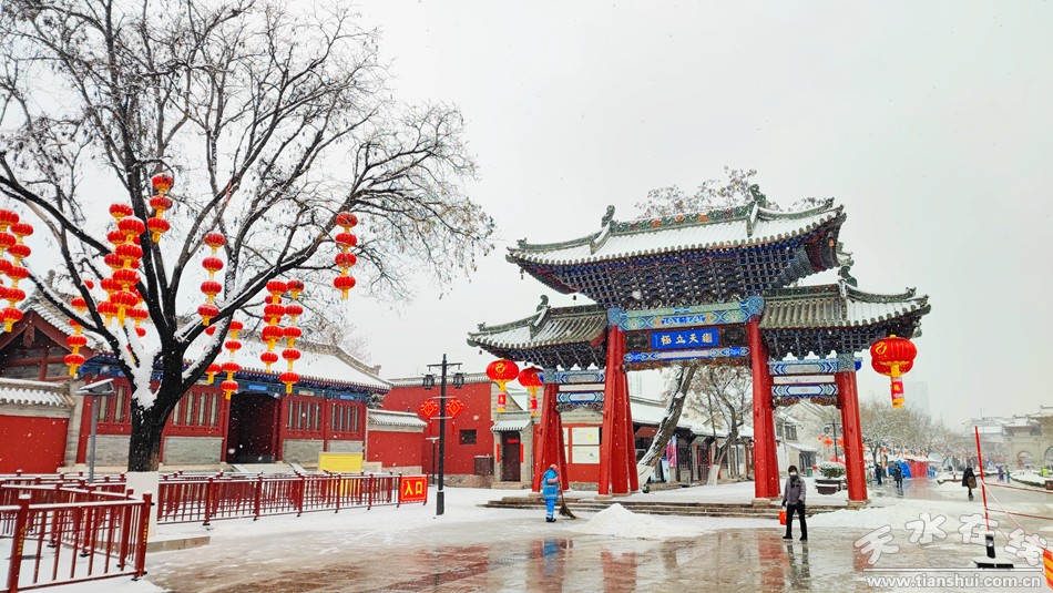 天水在線攝影報道|雪落天水伏羲廟(橫)