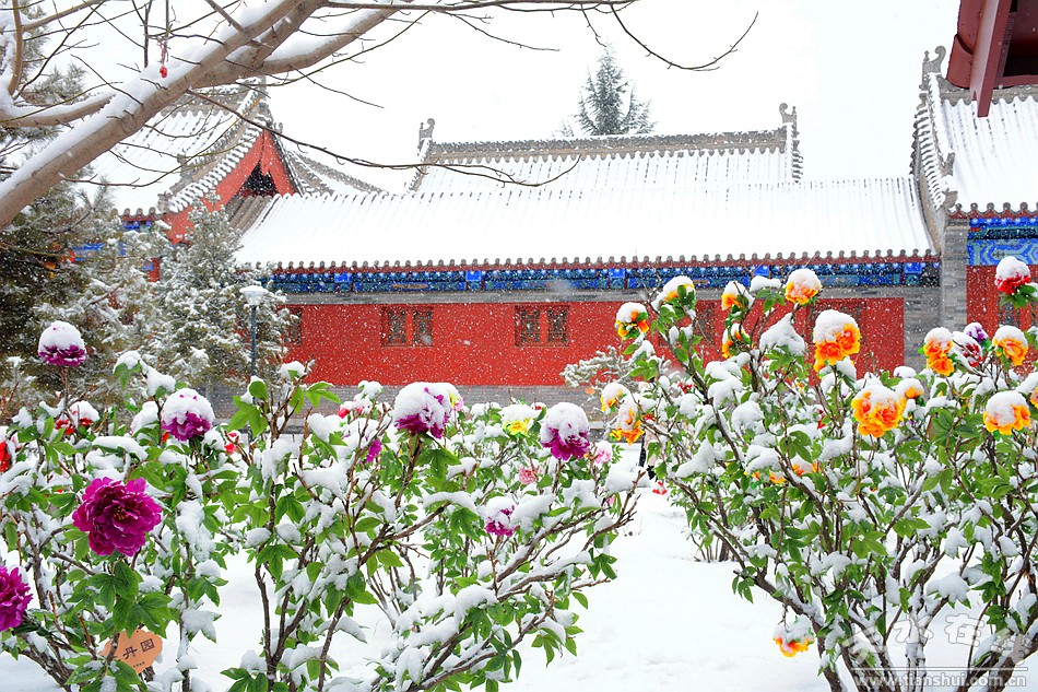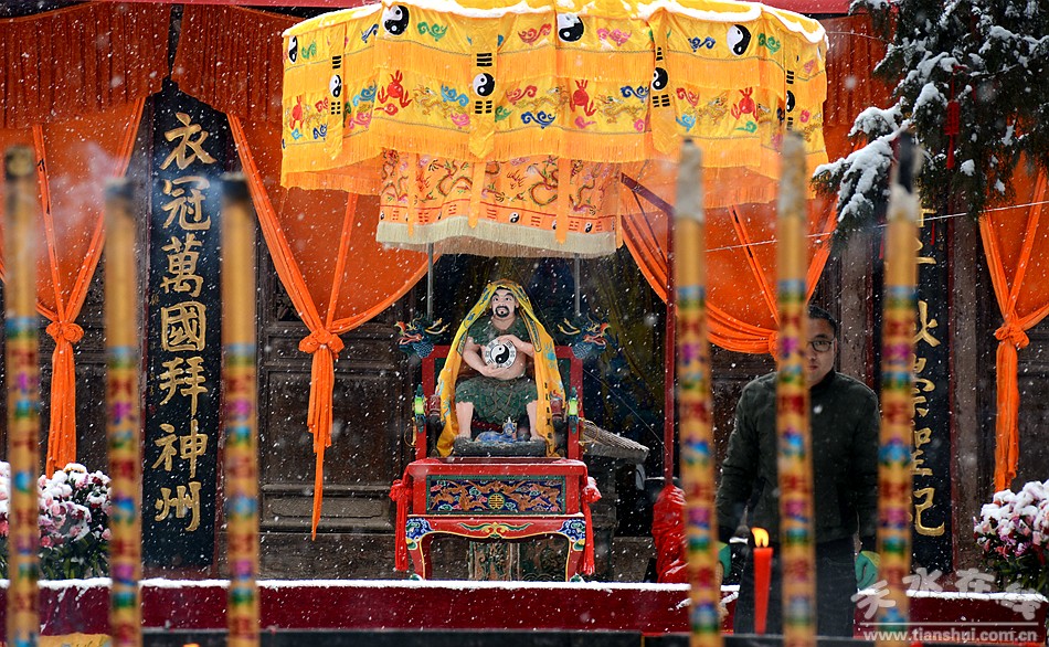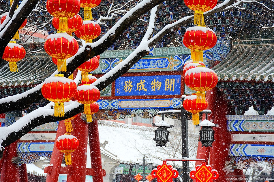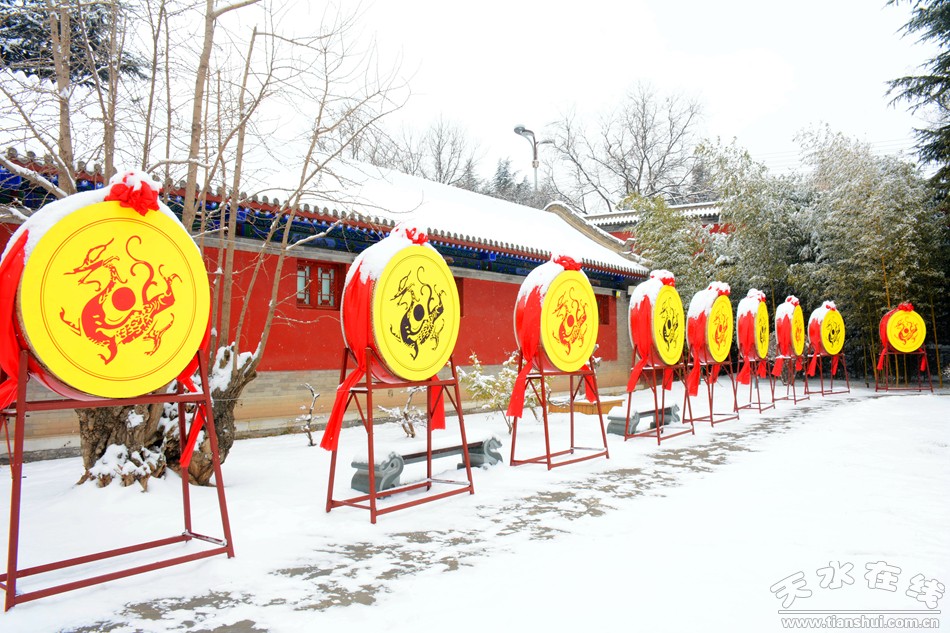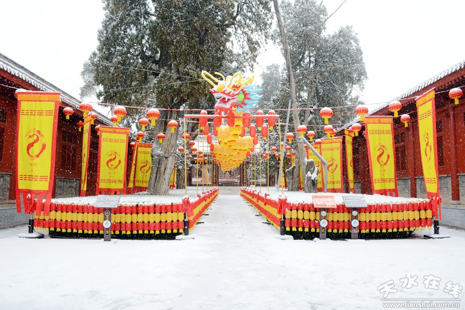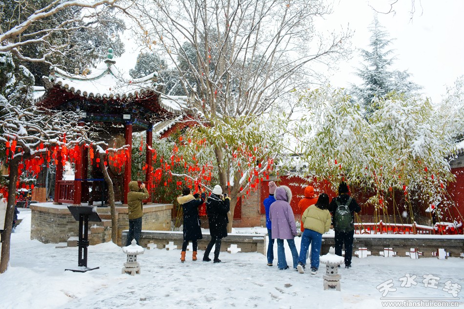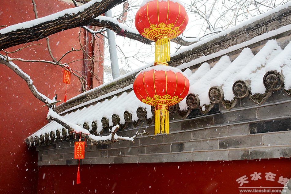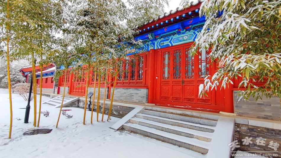 天水在線攝影報道|雪落天水伏羲廟(橫)