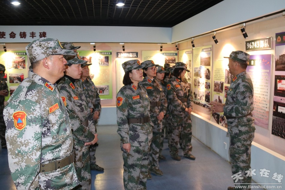 參觀見學提標準。訓練之后,組織參觀了天水市國防教育館,重溫我國和我市國防建設(shè)的發(fā)展歷史,展示我軍和駐地駐軍國防建設(shè)成果,警示我們居安思危、自強不息,激發(fā)我們國防意識、備戰(zhàn)練兵熱情。還組織參觀了天水武警某中隊的戰(zhàn)備物資庫,通過現(xiàn)場觀摩標準、正規(guī)、適用、整齊的庫室和物資,聆聽保管員耐心細致的講解,提升了我們的備戰(zhàn)觀念和高標準高質(zhì)量的建設(shè)意識。