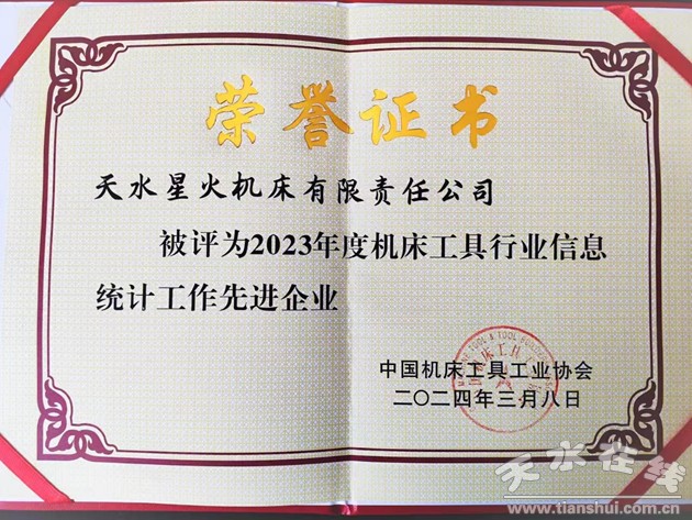 星火機床公司日前榮獲中國機床工具工業(yè)協(xié)會頒發(fā)的“2023年度機床工具行業(yè)信息統(tǒng)計工作先進企業(yè)”榮譽稱號。