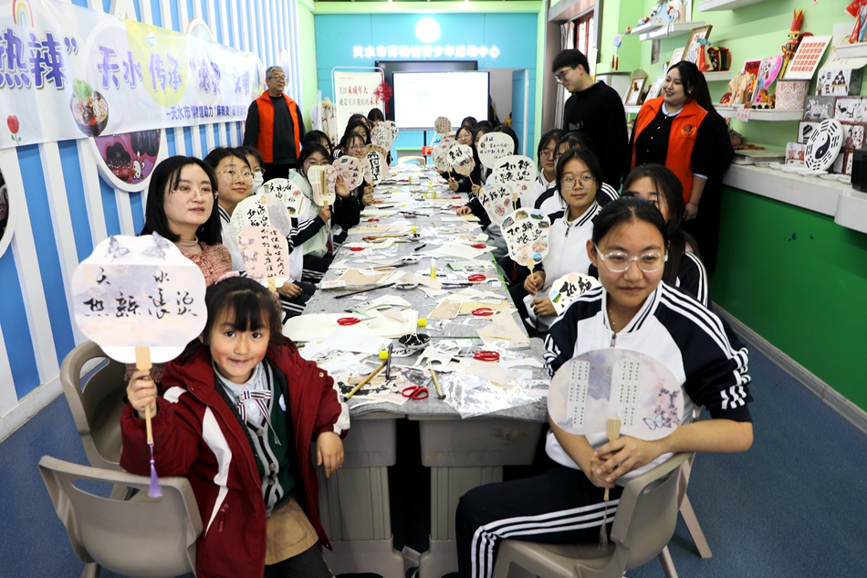 本次活動以書寫扇面作品為主要形式,由同學們在扇面上書寫天水的“滾燙”文化,并以“麻辣燙”主題的貼紙將扇面進行裝飾。旨在增強大家的參與感、體驗感,達到寓教于樂的目的。每一副作品都飽含著大家對家鄉(xiāng)的熱愛,對天水歷史文化的驕傲和自豪。