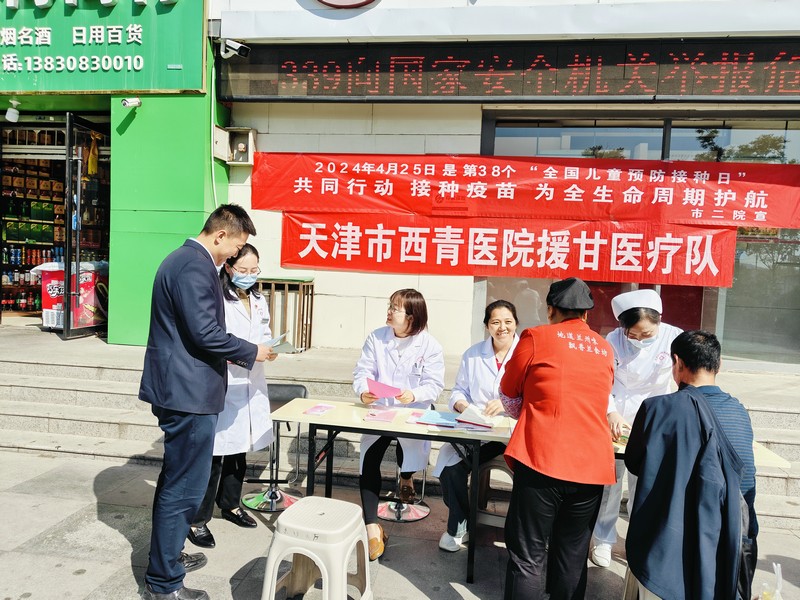 4月25日是第38個“全國兒童預(yù)防接種日”,今年的主題為“共同行動 接種疫苗 為全生命周期護(hù)航”。為進(jìn)一步宣傳疫苗接種在控制傳染病、保護(hù)人民群眾生命健康中的重要作用,當(dāng)天下午,天水市第二人民醫(yī)院公共衛(wèi)生科聯(lián)合天津市西青醫(yī)院援甘醫(yī)療隊(duì)和產(chǎn)科在麥積區(qū)三馬路便橋頭開展“全國兒童預(yù)防接種日”主題宣傳活動。