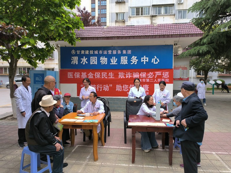 4月28日,天水市第二人民醫(yī)院醫(yī)?坡(lián)合第六黨支部到濱河路社區(qū)渭水園小區(qū)開展以“醫(yī);鸢踩麄鳌焙汀皭勰X行動(dòng)助您保健康”為主題的義診宣傳活動(dòng)。