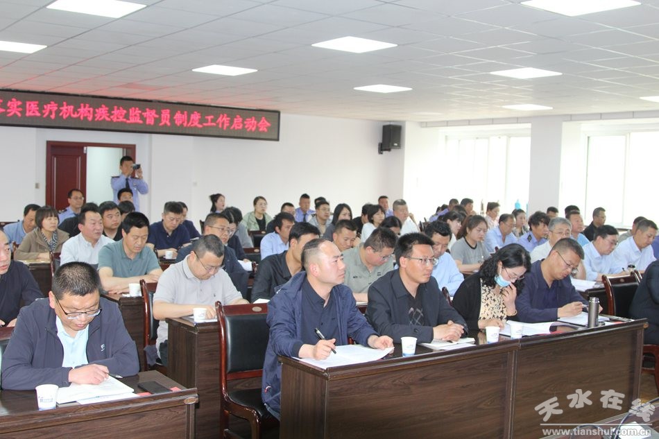 為認(rèn)真貫徹落實(shí)國家疾病預(yù)防控制體系改革重要任務(wù)和我市衛(wèi)生健康高質(zhì)量發(fā)展決策部署,進(jìn)一步創(chuàng)新醫(yī)防協(xié)同、醫(yī)防融合機(jī)制,全面探索完善醫(yī)療機(jī)構(gòu)疾病預(yù)防控制監(jiān)督員制度試點(diǎn)工作,提升醫(yī)療機(jī)構(gòu)傳染病早發(fā)現(xiàn)、早報(bào)告、早處置的能力,5月10日,天水市疾控中心組織召開了天水市全面落實(shí)醫(yī)療機(jī)構(gòu)疾控監(jiān)督員制度試點(diǎn)工作啟動(dòng)會(huì),各縣區(qū)疾控局局長、疾控中心分管主任,市一院、市中醫(yī)院、市三院、市婦保院、市407醫(yī)院、秦州區(qū)人民醫(yī)院分管院長和公衛(wèi)科長,以及秦州區(qū)各鄉(xiāng)鎮(zhèn)衛(wèi)生院院長,秦州轄區(qū)所有民營醫(yī)院負(fù)責(zé)人共計(jì)80多人參加會(huì)議。市衛(wèi)生健康委副主任、市疾控局局長范小榮出席會(huì)議并講話,市疾控中心副主任張志賢主持會(huì)議。