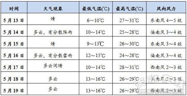 預(yù)計(jì)本周天氣以晴間多云為主,其中13日風(fēng)力較大,14日午后、16日午后有分散性陣雨或雷陣雨。氣溫預(yù)報(bào)以秦州區(qū)為例,日最低氣溫10~16℃,日最高氣溫28~31℃。
