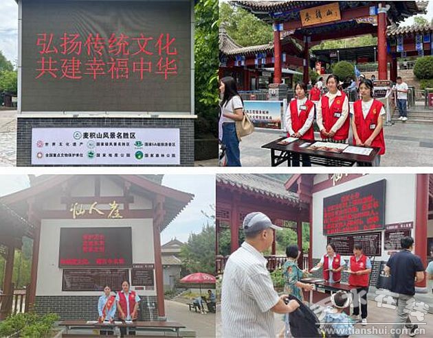 在麥積山、仙人崖、石門(mén)等景區(qū)活動(dòng)現(xiàn)場(chǎng),景區(qū)工作人員通過(guò)懸掛宣傳橫幅、展板、發(fā)放宣傳資料、循環(huán)播放LED屏等方式,重點(diǎn)向游客宣講了《中國(guó)公民出(國(guó))境旅游文明行為指南》、《中國(guó)公民國(guó)內(nèi)旅游文明行為公約》及《文明旅游十大提醒語(yǔ)》等內(nèi)容,此次活動(dòng)還通過(guò)文創(chuàng)產(chǎn)品、旅游商品展示等方式,讓游客更加直觀地了解麥積山大景區(qū)文化旅游資源。在麥積山大景區(qū)旅游品牌形象宣傳及咨詢(xún)服務(wù)臺(tái),工作人員通過(guò)宣傳展板、宣傳折頁(yè)等形式,細(xì)心周到地為游客講解了麥積山大景區(qū)五大景區(qū)特征、熱門(mén)精品旅游線(xiàn)路、優(yōu)質(zhì)旅游產(chǎn)品及旅游便民惠民措施。
