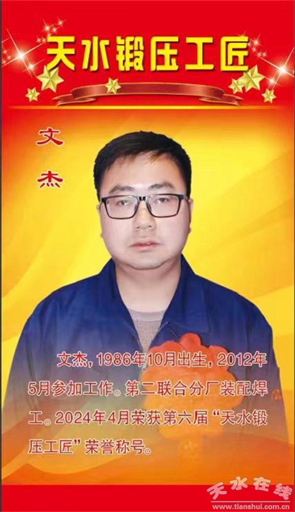 在我們身邊,總有一些人默默付出,用他們的汗水和智慧書(shū)寫(xiě)著不平凡的人生。文杰,1986年生,2012年5月參加工作,中技學(xué)歷,現(xiàn)為天水鍛壓機(jī)床(集團(tuán))有限公司第二聯(lián)合分廠裝配焊工。自參加工作以來(lái),工作認(rèn)真負(fù)責(zé),堅(jiān)持虛心向同事、師傅們學(xué)習(xí),時(shí)常以勤學(xué)好問(wèn)彌補(bǔ)和提高著自己的業(yè)務(wù)水平及工作能力。