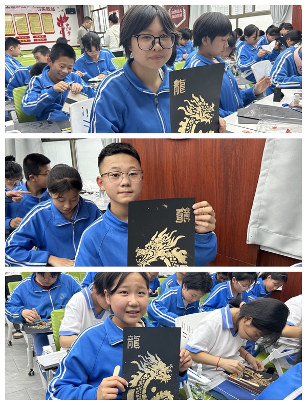 天水市博物館以伏羲文化與傳統(tǒng)非遺文化為依托,策劃了“金玉珠貝‘龍’重登場(chǎng)”為主題的非遺傳承之燒箔畫(huà)主題社教課程,并將此課程帶到天水市石馬坪中學(xué),課堂上講解員為同學(xué)們講“龍”、解“龍”、大家一起制作燒箔“龍”畫(huà),讓青少年們能夠切實(shí)感受到非遺文化的魅力。