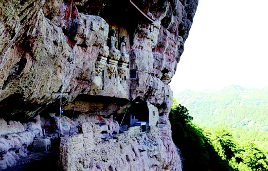 麥積山石窟聞名遐邇,但與之相距約2.5公里的羅漢崖上的“三世佛”卻鮮為人知。據(jù)考證,羅漢崖的三尊“三世佛”是北宋初期的作品,分別為燃燈古佛、釋迦牟尼佛和阿彌陀佛,代表著前世、今生、未來之意。這三尊佛像在雕塑手法上既有唐代雕塑的豐滿,又有宋代雕塑的厚重,線條流暢,造型生動,對研究北宋早期的佛教文化與雕塑藝術有著彌足珍貴的價值。(文宣)