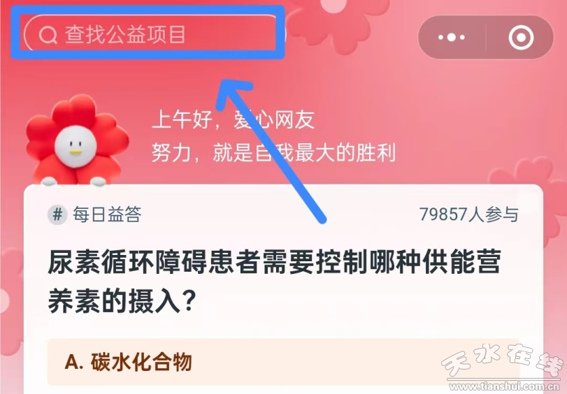2.進(jìn)入騰訊公益小程序后,在搜索欄輸入“愛(ài)心甘肅幸福家園”