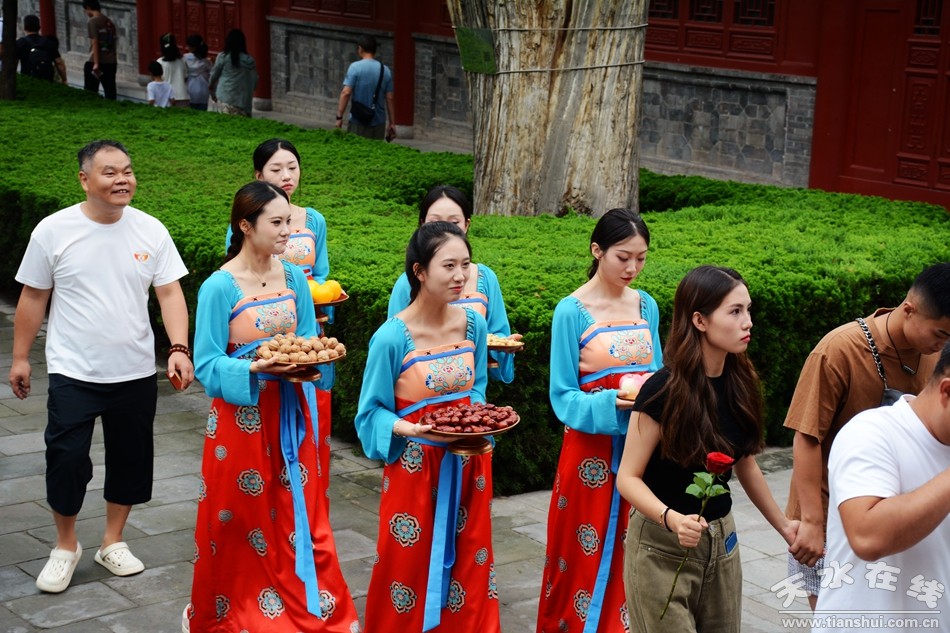 維公元二〇二四年八月十日,歲次甲辰,農(nóng)歷七月七日,吉時既定,天清地寧。時值七夕佳期,良辰美景。佳偶既成,齊聚天水伏羲廟之圣地,誠心誠意,以祈福祉。