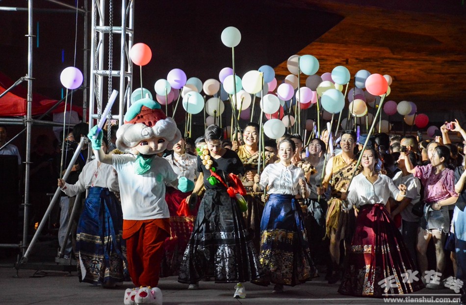 8月9日晚,隨著副市長董小平在開幕儀式上致辭,市委常委、宣傳部部長王文東的宣布音樂節(jié)正式開幕,武山非遺羊皮鼓民俗表演率先登場,其獨特的節(jié)奏和韻律瞬間點燃了現(xiàn)場觀眾的熱情,緊接著,武山搗蒜罐的表演更是將氛圍推向高潮,讓觀眾們感受到了濃厚的民俗文化氣息。在星空音樂節(jié)期間,不僅有民族舞蹈《麥積飛天》和動感街舞《大風車》等各具特色的表演,還有本土知名音樂人及樂隊的原創(chuàng)歌曲演唱和經(jīng)典名曲翻唱。這些表演不僅展示了音樂的多樣性和魅力,也體現(xiàn)了天水地區(qū)豐富的文化底蘊和藝術(shù)創(chuàng)造力。此外,音樂節(jié)還結(jié)合了獨特的天井建筑造型,通過光影藝術(shù)的裝飾,為觀眾營造了一個獨特的戶外音樂體驗空間。