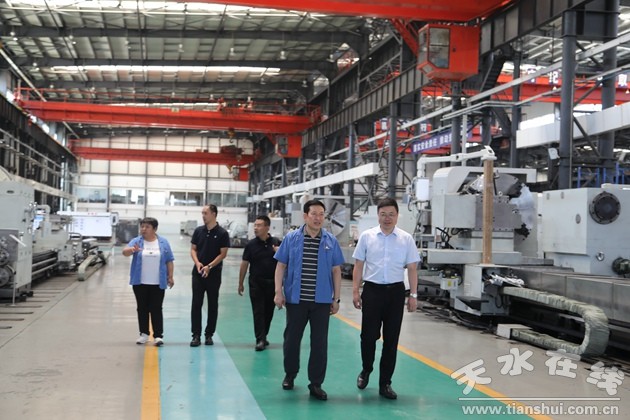 劉勝陪同李濤一行參觀(guān)了數(shù)控裝配車(chē)間、青重加工車(chē)間等生產(chǎn)現(xiàn)場(chǎng),觀(guān)摩了現(xiàn)場(chǎng)陳列的車(chē)輪車(chē)床、軋輥磨床、臥式車(chē)床等產(chǎn)品。劉勝結(jié)合現(xiàn)場(chǎng)產(chǎn)品講解了各產(chǎn)品的性能特點(diǎn)及技術(shù)參數(shù),并向來(lái)訪(fǎng)客人介紹了企業(yè)科技創(chuàng)新、產(chǎn)品研發(fā)以及人才培養(yǎng)方面的相關(guān)情況。