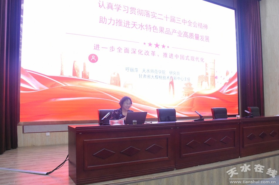 在天水經(jīng)濟(jì)技術(shù)開發(fā)區(qū)和麥積區(qū)職業(yè)中等專業(yè)學(xué)校開展的宣講活動中,全國工作先進(jìn)者,天水師范學(xué)院生物工程與技術(shù)學(xué)院教授呼麗萍立足自身工作實(shí)際,用形象生動、通俗易懂的語言對相關(guān)精神進(jìn)行了深刻的闡述和精彩的解讀,引導(dǎo)廣大職工和學(xué)生深刻理解、準(zhǔn)確把握精神內(nèi)涵,鼓勵大家在日常工作和學(xué)習(xí)中用黨的最新精神統(tǒng)一思想、凝聚共識,將學(xué)習(xí)精神的成果轉(zhuǎn)化為推動工作學(xué)習(xí)的強(qiáng)大動力。