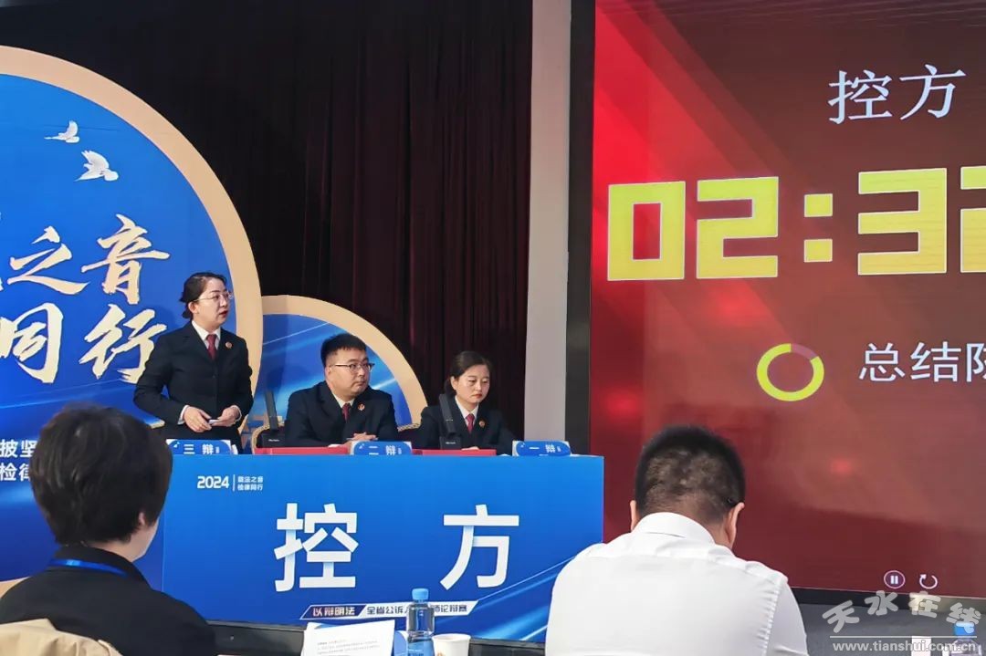 為進(jìn)一步提升公訴人、律師職業(yè)素能,展示公訴人與律師職業(yè)形象,積極構(gòu)建法律職業(yè)共同體,助力甘肅法治建設(shè),9月21日至9月24日,甘肅省人民檢察院、甘肅省司法廳、甘肅省律師協(xié)會聯(lián)合舉辦了“隴法之音 檢律同行”全省公訴人及律師論辯賽。經(jīng)過四天的激烈比拼,天水市檢察院代表隊(duì)從全省34支公訴人、律師代表隊(duì)中脫穎而出,最終以榮獲團(tuán)體二等獎、一名個(gè)人獲評優(yōu)秀辯手的優(yōu)異成績圓滿收官。