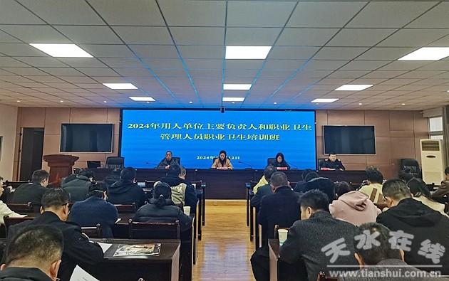 為了加強(qiáng)職業(yè)衛(wèi)生監(jiān)督管理工作,強(qiáng)化用人單位職業(yè)病防治的主體責(zé)任,預(yù)防、控制職業(yè)病危害,保障勞動(dòng)者健康和相關(guān)權(quán)益,11月12日,天水市疾病預(yù)防控制中心(市衛(wèi)生監(jiān)督所)召開2024年用人單位主要負(fù)責(zé)人和職業(yè)衛(wèi)生管理人員職業(yè)衛(wèi)生工作培訓(xùn)班,市疾控中心黨委委員、副主任趙俐出席開班儀式。參加此次培訓(xùn)班有64家用人單位的主要負(fù)責(zé)人及職業(yè)衛(wèi)生管理員共計(jì)100余人。