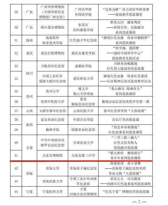 近日,國(guó)家文物局辦公室與教育部辦公廳共同公布了2024年度以革命文物為主題的“大思政課”優(yōu)質(zhì)資源建設(shè)推介精品項(xiàng)目名單,天水市博物館申報(bào)的“‘薪火相傳賡續(xù)前行’青少年系列思政課程”成功入選。此次活動(dòng)由國(guó)家文物局、教育部舉辦,旨在深入踐行習(xí)近平總書(shū)記關(guān)于革命文物工作以及學(xué)校思政建設(shè)的重要指示精神,穩(wěn)步推進(jìn)大中小學(xué)思政課一體化進(jìn)程。