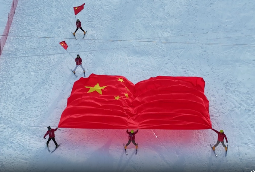·天水花舞南山滑雪場正式開滑 巨幅國旗,閃亮登場!