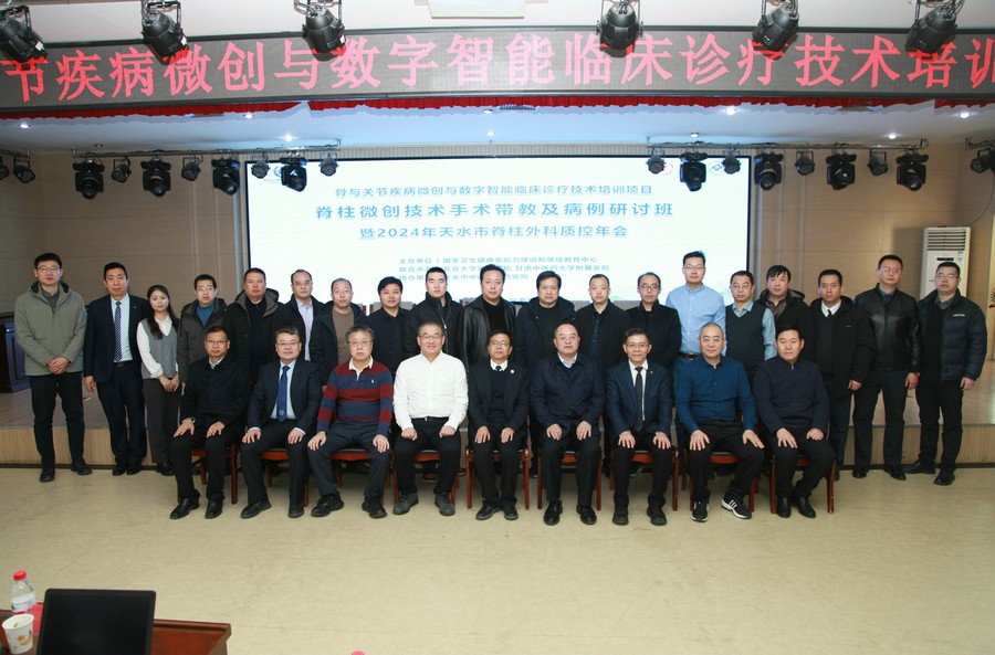 12月28日,由國家衛(wèi)生健康委能力建設(shè)和繼續(xù)教育中心主辦,甘肅中醫(yī)藥大學(xué)附屬醫(yī)院(全國基地)承辦,天水市中西醫(yī)結(jié)合醫(yī)院(市二院)協(xié)辦的骨與關(guān)節(jié)疾病微創(chuàng)與數(shù)字智能臨床診療技術(shù)培訓(xùn)項(xiàng)目脊柱微創(chuàng)技術(shù)手術(shù)帶教及病例研討班暨2024年天水市脊柱外科質(zhì)控年會在市二院多功能廳順利召開。邀請?zhí)焖行l(wèi)生健康委黨組書記、主任王定新,甘肅中醫(yī)藥大學(xué)附屬醫(yī)院黨委書記吳冰,市二院黨委書記曹寶國出席并講話,省內(nèi)外專家教授參會授課。會議由市二院院長唐志鋒主持。市內(nèi)各級醫(yī)療單位骨科主任、業(yè)務(wù)骨干及相關(guān)專業(yè)醫(yī)務(wù)人員約200余人參加。