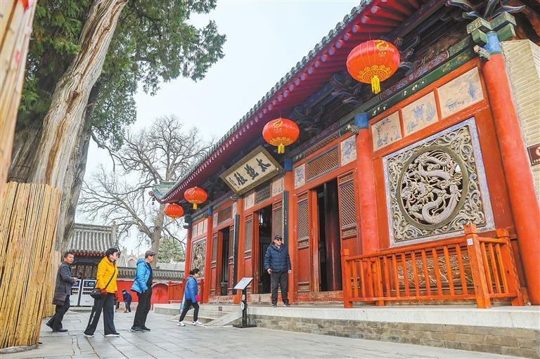 得到精心呵護的不只是古建筑,還有廟內(nèi)那37株古樹。伏羲廟內(nèi)現(xiàn)存古樹多為明代所植,少量為宋、金、元三代栽植,先天殿月臺之上的兩株古柏樹齡已過千年,宮門東側(cè)有唐槐一株,被譽為“龍槐”,距今已有1300多年的歷史。這些古樹,雖歷經(jīng)風雨,依然枝繁葉茂。