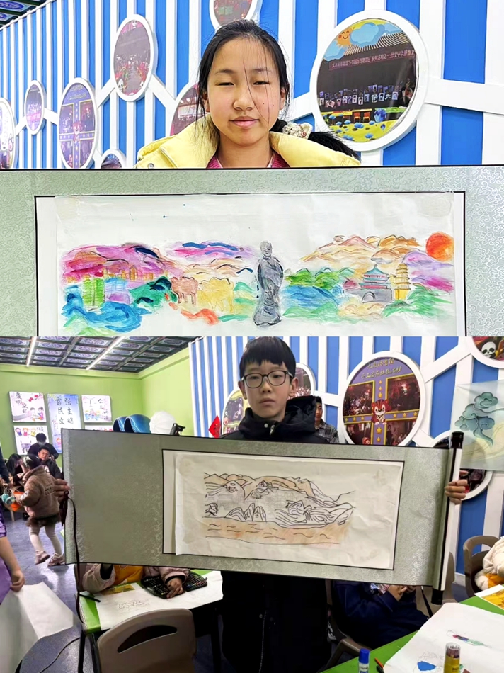 一番努力后,一幅幅精美卷軸畫作精彩呈現(xiàn)。這些作品不僅展現(xiàn)了孩子們?cè)鷮?shí)繪畫功底,更飽含他們對(duì)絲路文化的獨(dú)特理解與感悟?偨Y(jié)分享環(huán)節(jié),孩子們踴躍發(fā)言,感慨家鄉(xiāng)天水在絲綢之路上的重要地位,驚嘆絲路文化的博大精深,期待未來(lái)參與更多此類活動(dòng)。