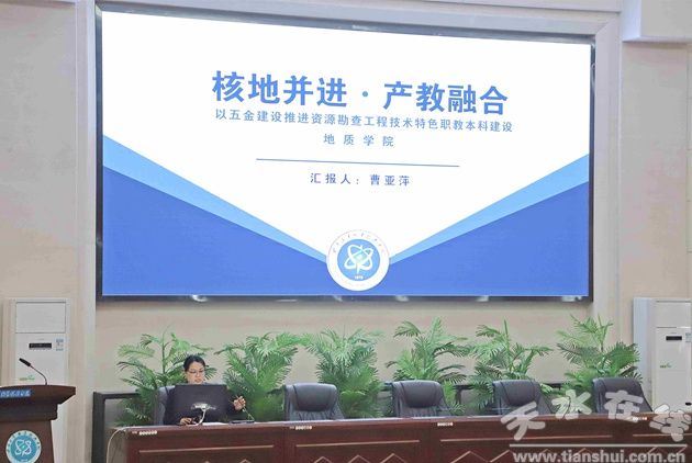 地質(zhì)學(xué)院黨總支書記曹亞萍以“核地并進(jìn)·產(chǎn)教融合”為題,詳細(xì)講解了以“五金”建設(shè)推進(jìn)資源勘查工程技術(shù)專業(yè)特色職教本科建設(shè)情況。報告中指出本專業(yè)要賡續(xù)核工業(yè)精神,緊扣“核地并進(jìn)”特色優(yōu)勢,聚焦地質(zhì)領(lǐng)域,打造核特色鮮明的國家專金特雙高專業(yè),努力成為國家核產(chǎn)業(yè)技術(shù)技能型人才培養(yǎng)高地。并以“五金”建設(shè)為抓手,對標(biāo)職教本科達(dá)標(biāo)要求,找不足、找定位、謀發(fā)展、定目標(biāo)。
