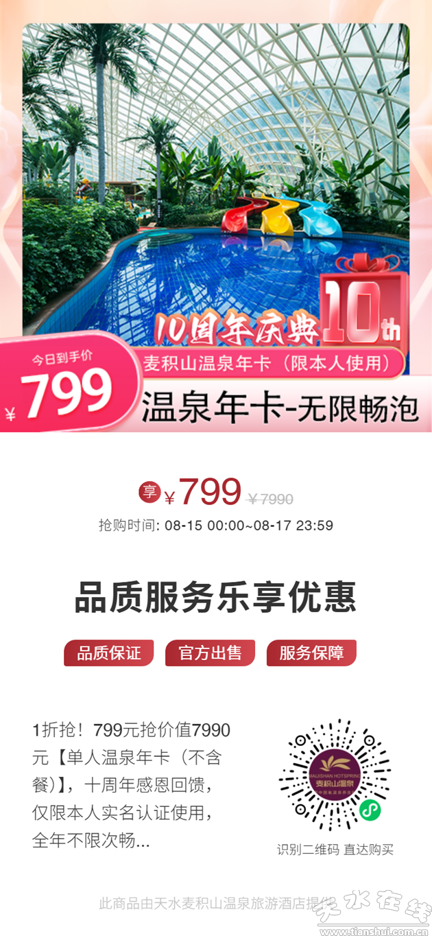 麥積山溫泉10周年!年卡799元,單日僅2.2元!無(wú)限泡湯+旅拍盛宴!錯(cuò)過(guò)再等十年!