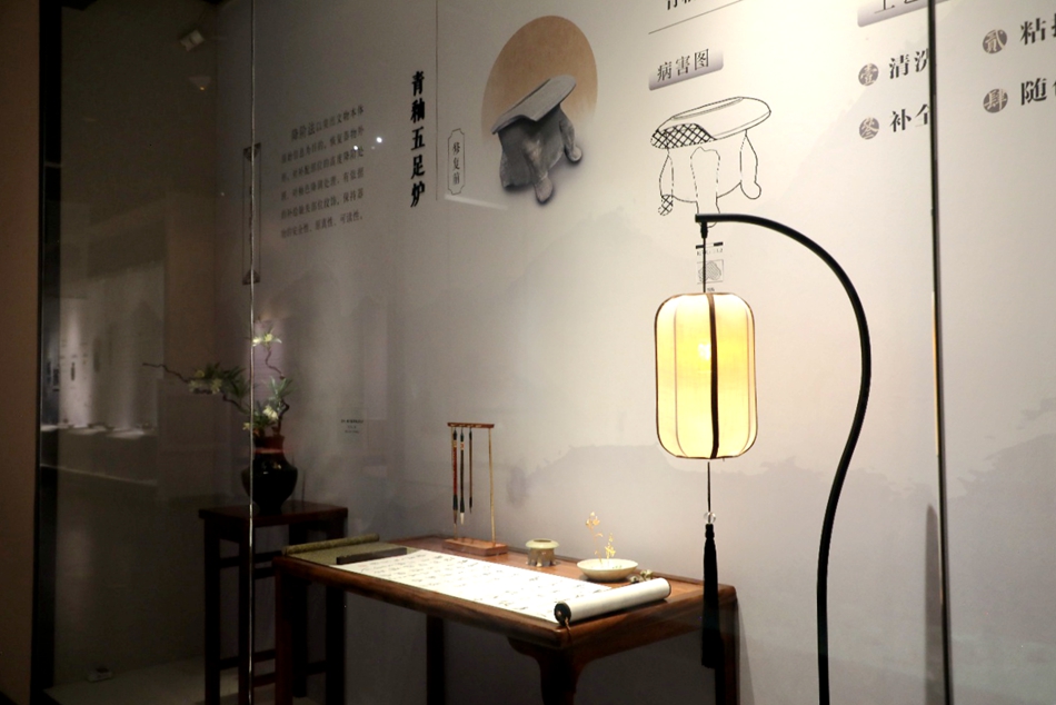 展覽努力營(yíng)造器物的場(chǎng)景再現(xiàn)和展覽的沉浸式體驗(yàn),讓觀眾在了解文物保護(hù)意義、認(rèn)識(shí)文物歷史價(jià)值的同時(shí),看到“惜物重生”的東方哲學(xué)。