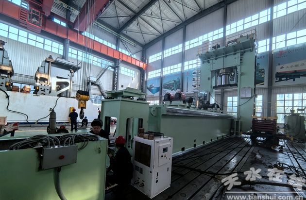 11月9日,天水鍛壓機床(集團)有限公司第二聯(lián)合分廠裝配現(xiàn)場,安裝工人與技術(shù)人員正在密切配合,調(diào)試河北敬業(yè)精密管業(yè)有限公司訂購的校直機,經(jīng)過緊張有序的調(diào)試,當(dāng)天下午實現(xiàn)了校直機動力。