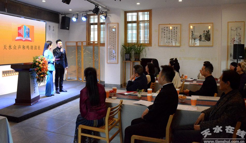 11月8日下午,由董秦、左朝霞兩位老師倡建的“天水眾聲和鳴朗讀社”成立儀式在國馥五星級(jí)茶館文化創(chuàng)意園舉行。