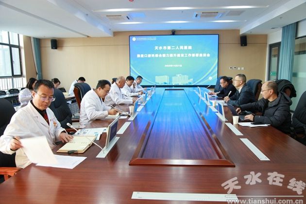 為全面推進口腔?颇芰ㄔO(shè),提升醫(yī)療服務(wù)水平,11月21日,天水市第二人民醫(yī)院在新門急診大樓11樓會議室召開“推進口腔科綜合能力提升建設(shè)工作部署座談會”,特邀四川大學(xué)華西口腔醫(yī)院教授、博士生導(dǎo)師包崇云,國家重點研發(fā)計劃主動健康口腔課題組成員、四川惠民口腔健康推廣中心項目運營主任藍松,天水市人民政府駐成都辦事處主任李永超等嘉賓出席。會議由院長主持。醫(yī)院在家班子成員,相關(guān)科室負(fù)責(zé)人參加。